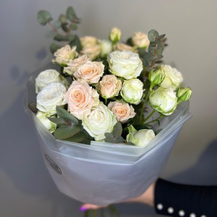 Букет из 11 фиолетовых маттиол и фисташки в стильной упаковке “Вайолет”
