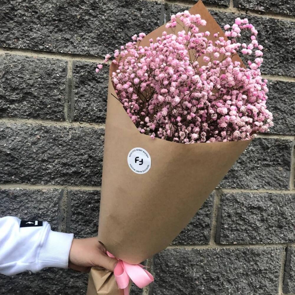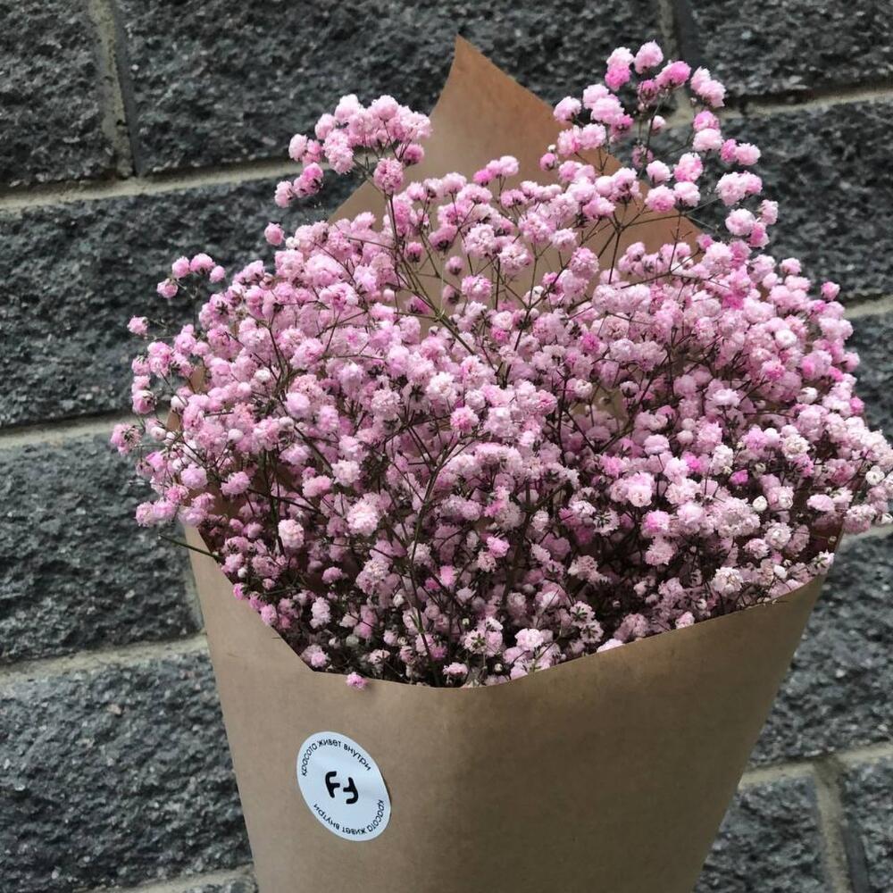 Гипсофила розовая – 3 шт.Крафт – 1 шт.Лента атласная – 1 шт.