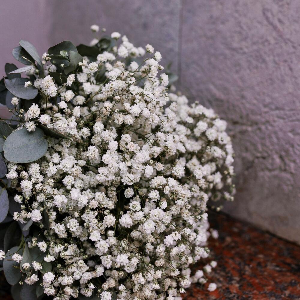 Букет невесты из гипсофилы и эвкалипта