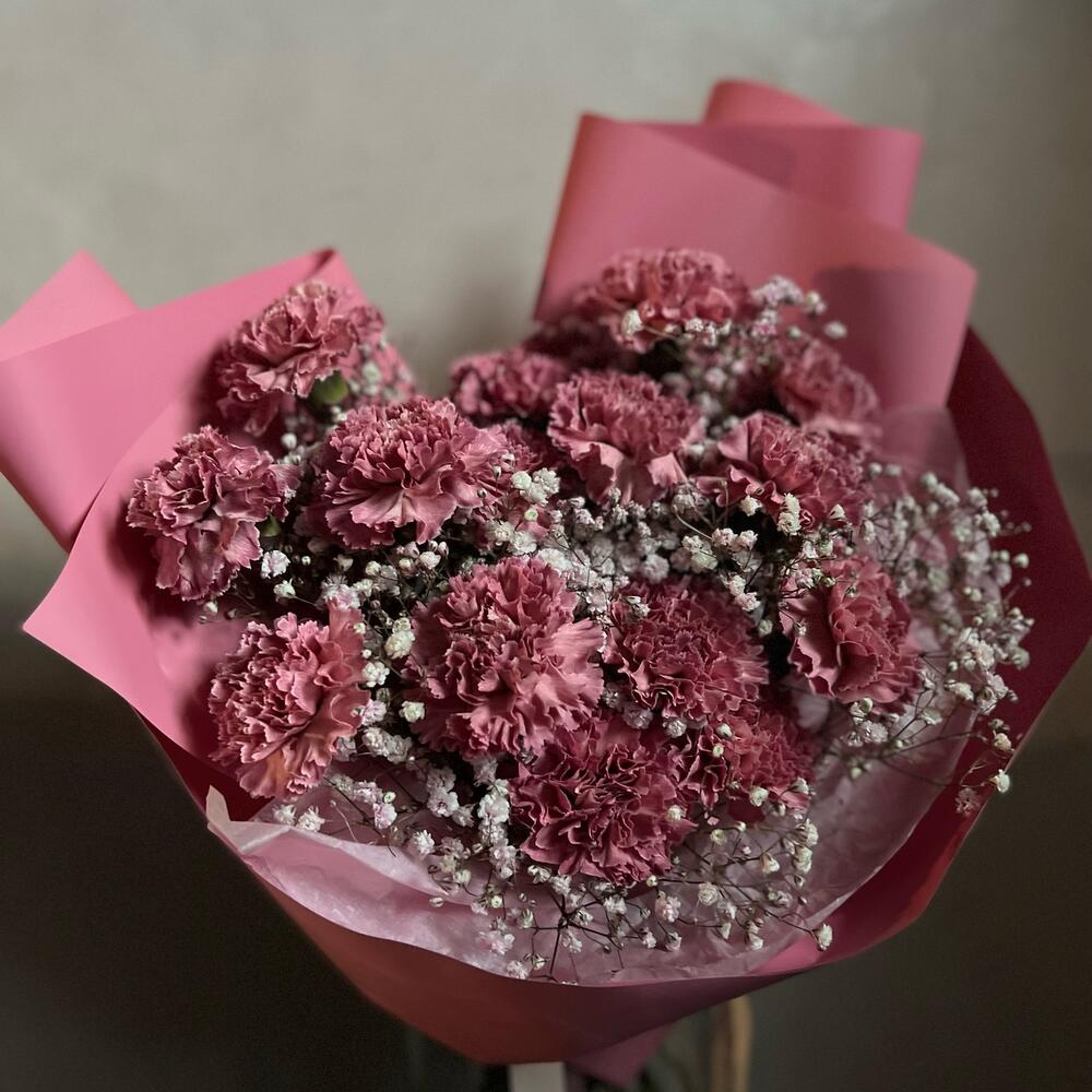 Гипсофила – 4 шт.Диантус – 17 шт.декоративная упаковка – 1 шт.Атласная лента – 1 шт.
