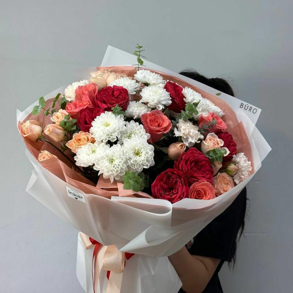 Гвоздики, Кустовые розы, Пионовидные розы, Розы