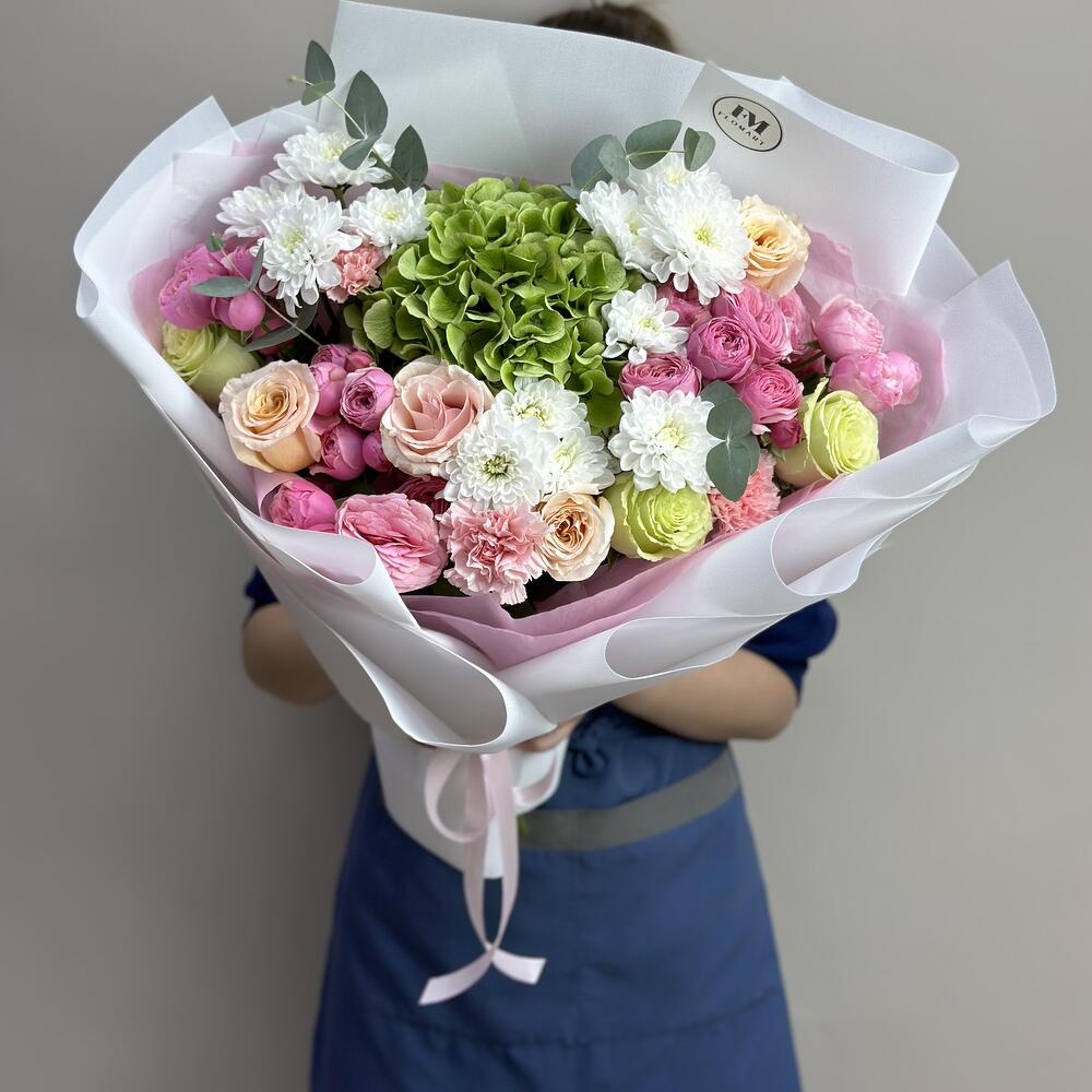 Гвоздики, Кустовые розы, Лизиантусы, Пионовидные розы, Розы