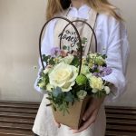 Сумочка с цветами – отличный способ выразить благодарность педагогу или врачу.Цветы внутри сумочки находятся в флористической губке, которую можно поливать, за счет чего они ещё долго сохранят свежесть и будут радовать получателя.