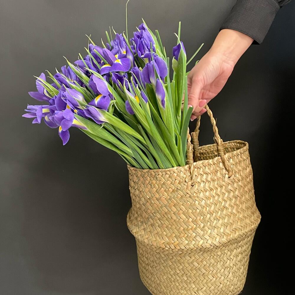 Корзина плетеная – 1 шт.Ирисы фиолетовые – 21 шт.