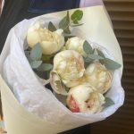 Белые пионы с эвкалиптом 5штук(сб032)