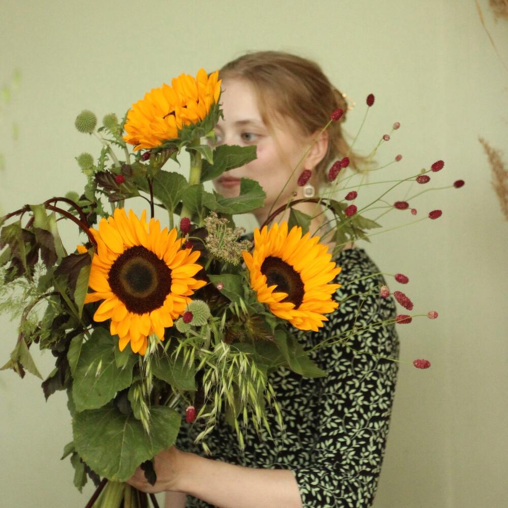 Лето в поле - Букет с подсолнухи и травами