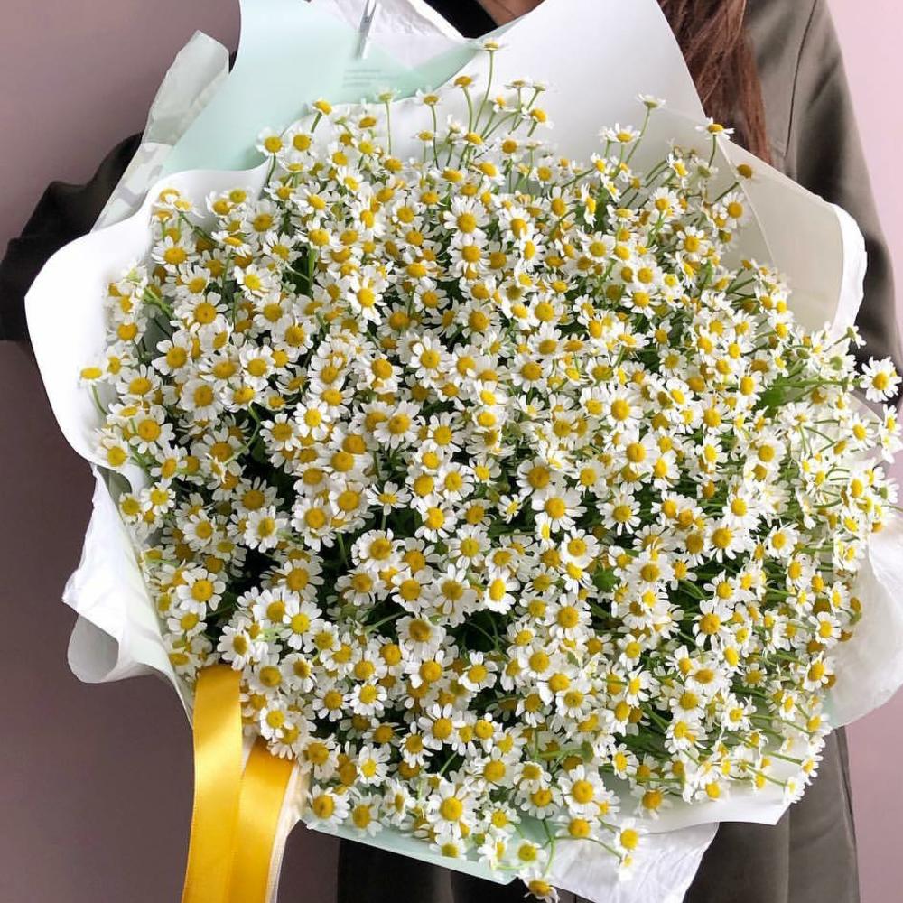 Матрикария (ромашка) – 19 шт.Упаковка дизайнерская – 1 шт.Лента атласная – 1 шт.