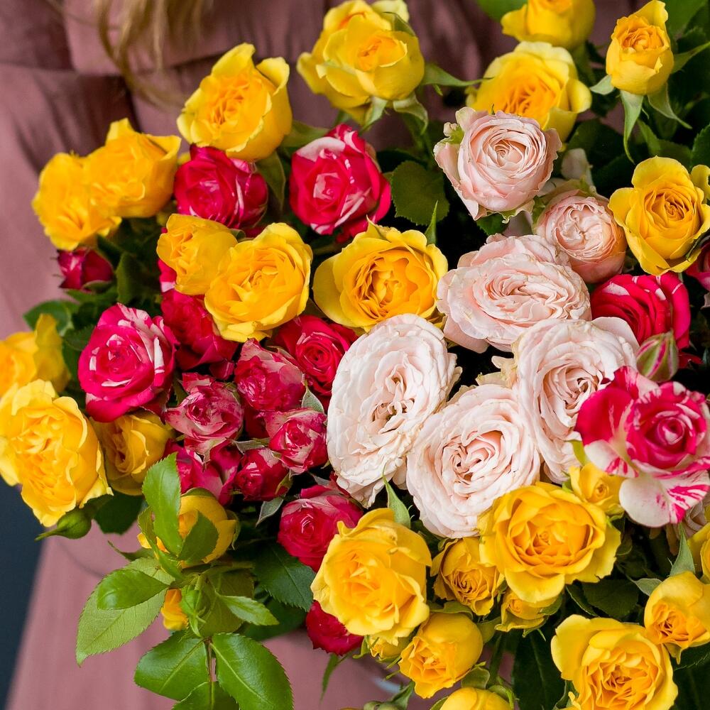 11 кустовых роз микс под ленту