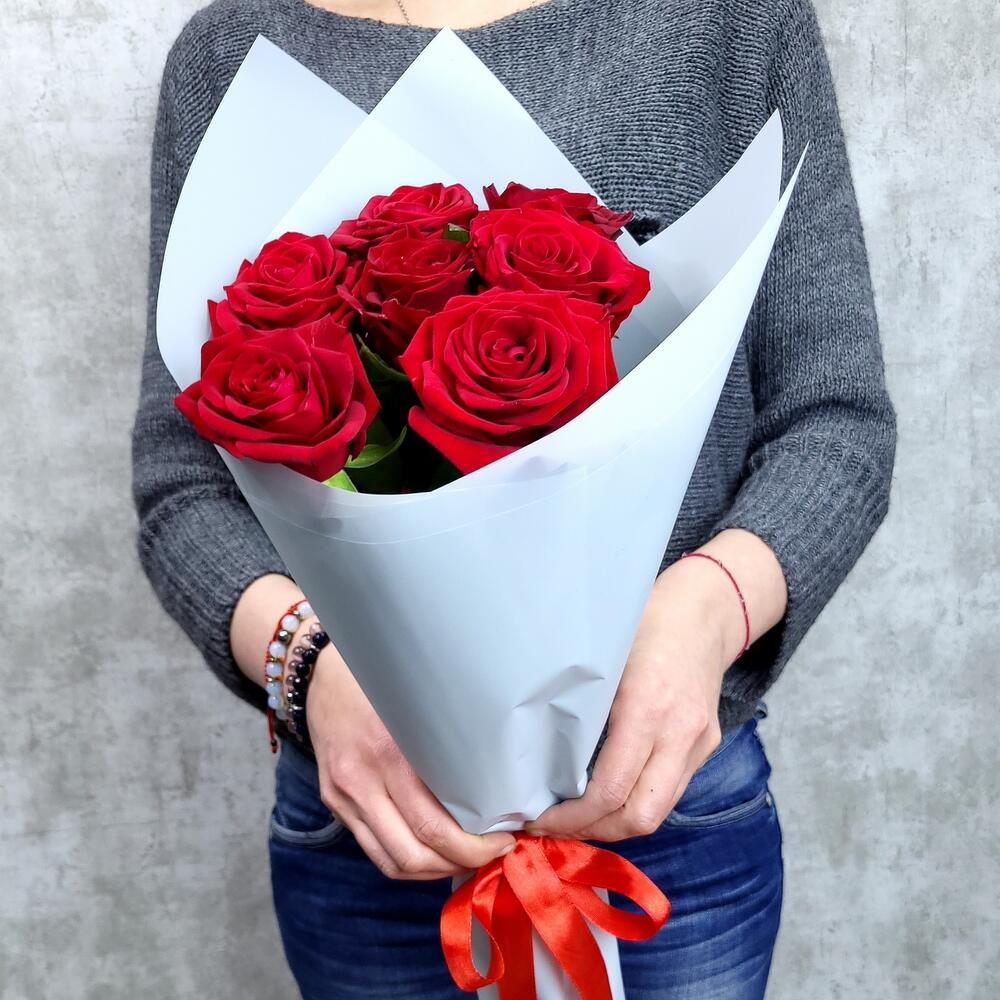 7 красных роз 60-70 см
