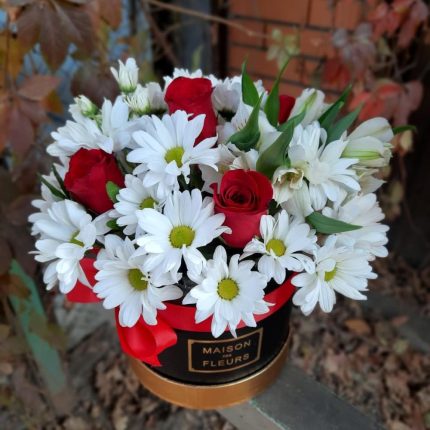 Розы и хризантемы в коробке