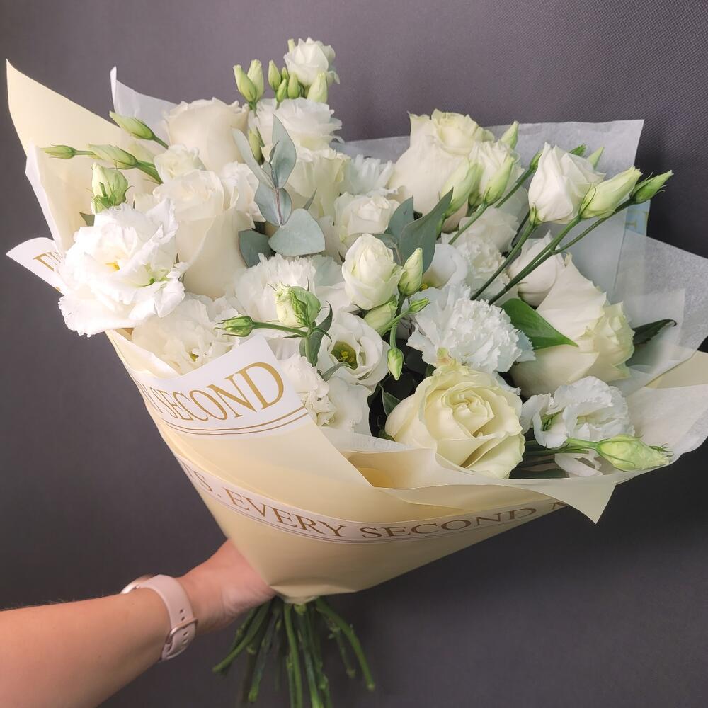 Категории: Гвоздики, Лизиантусы, Розы