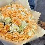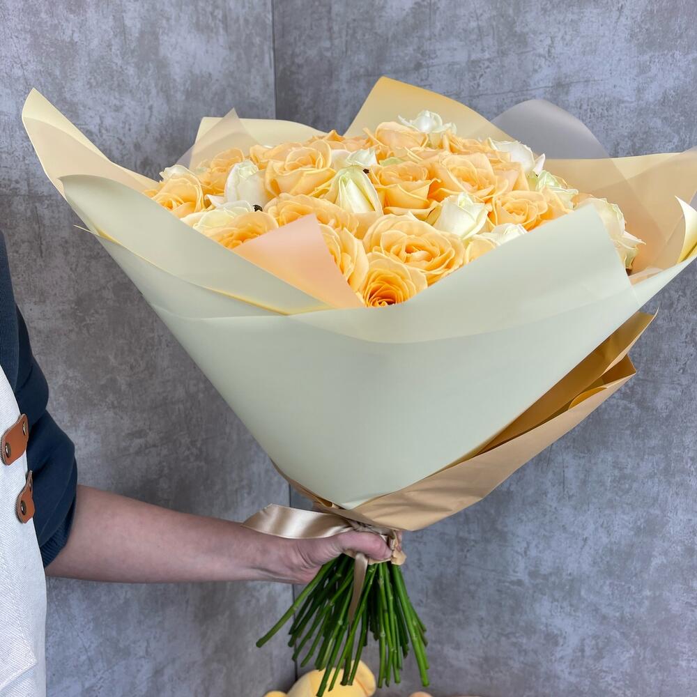 белые розы – 29 шт.Персиковая Роза – 30 шт.
