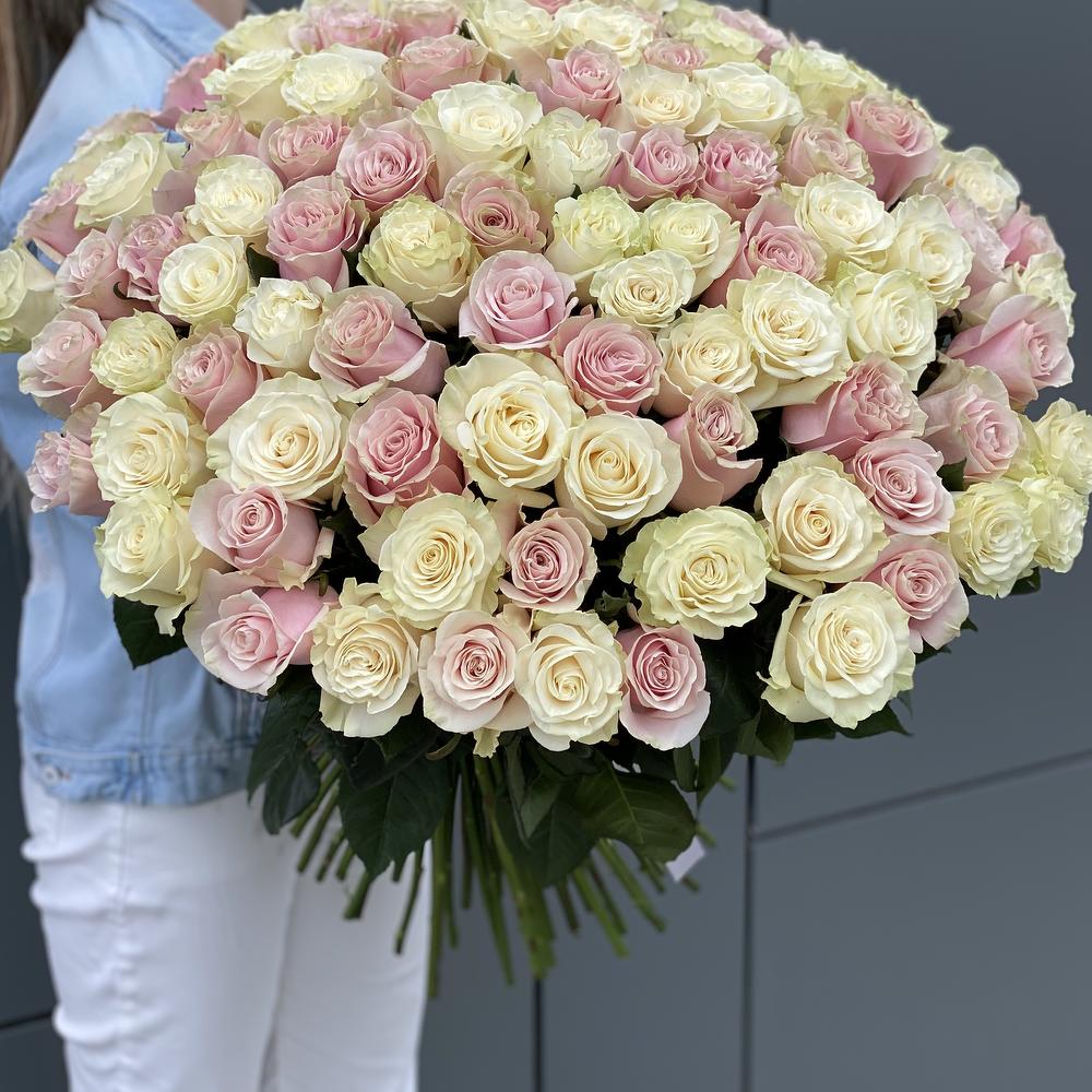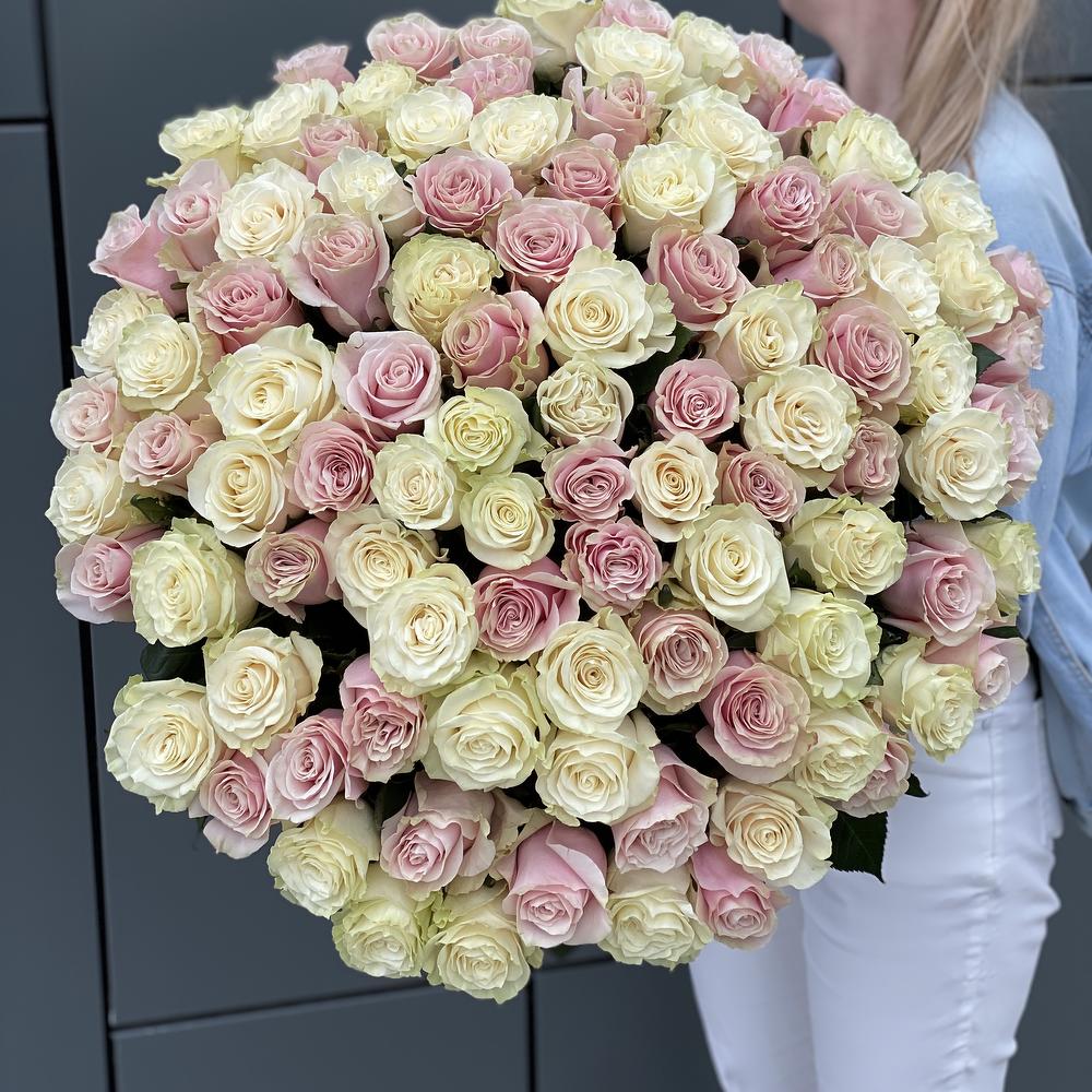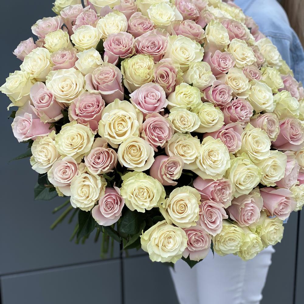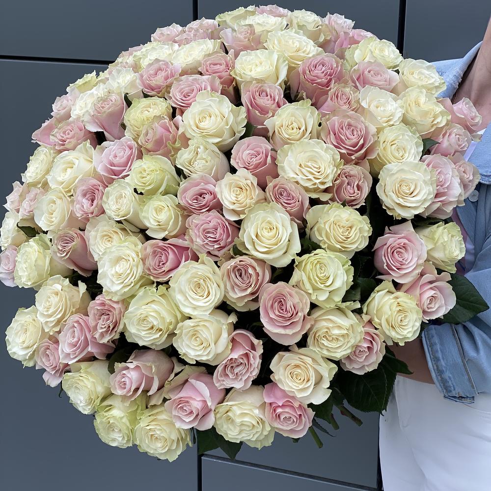 Букет из 101 белой и розовой розы