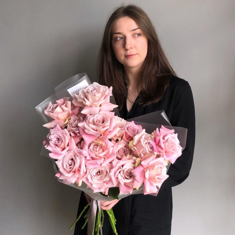 Букет из 15 французских роз "PINK MONDIAL"
