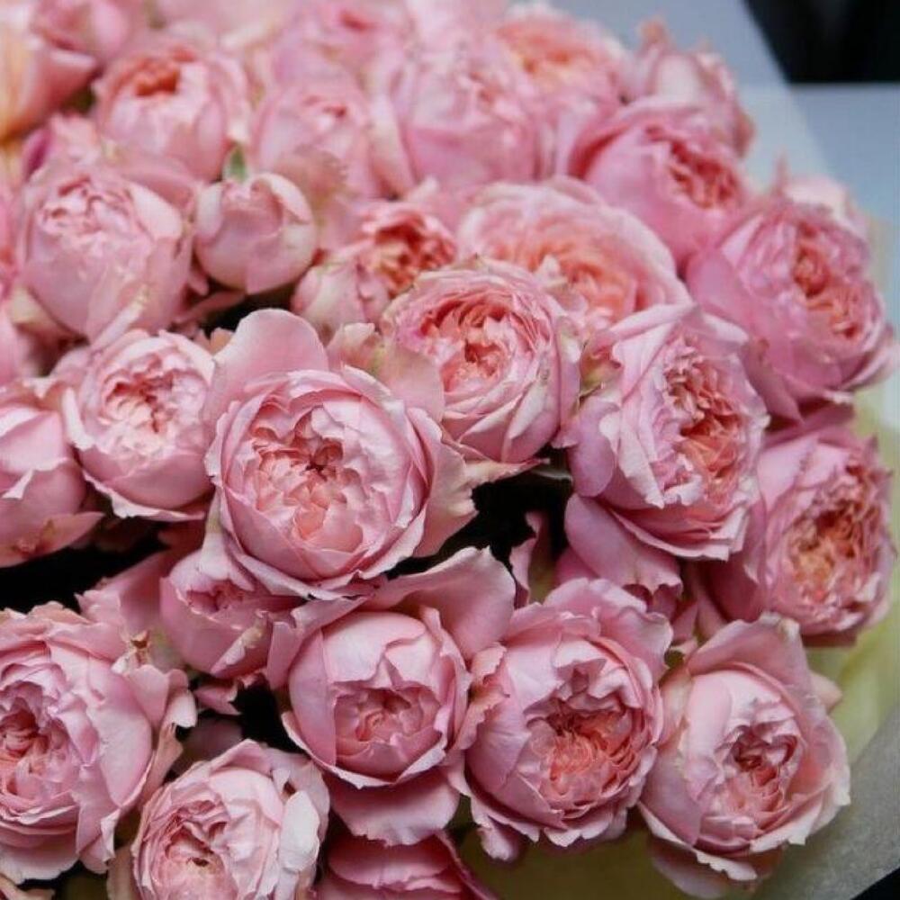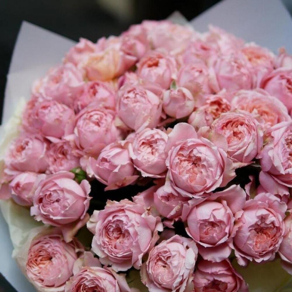 Роза пионовидная розовая – 51 шт.Упаковка дизайнерская – 2 шт.Лента атласная – 2 шт.Открыточка с вашими пожеланиями – 1 шт.хорошее настроение – 100 шт.инструкция по уходу за цветами – 1 шт.коробка переноска – 1 шт.Кризал – 1 шт.