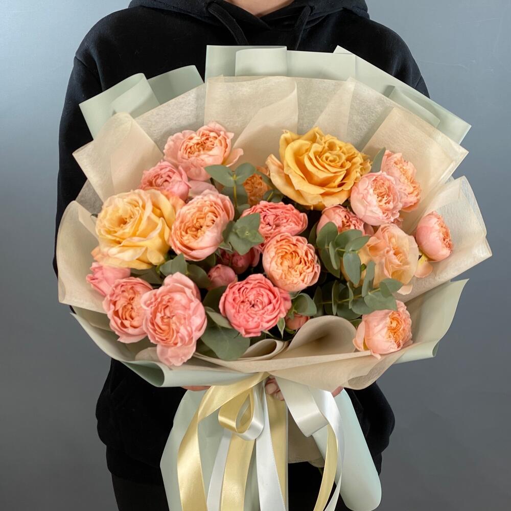Букет из одноголовой и кустовой розы Персиковый смузи