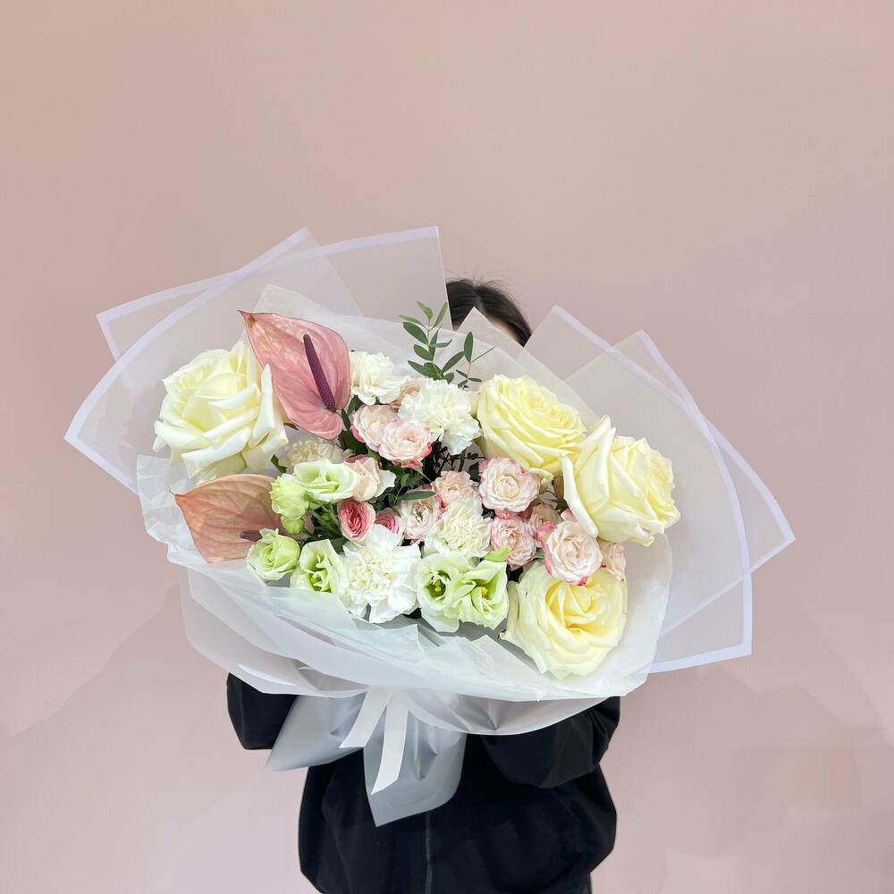 Альстромерии, Кустовые розы, Лизиантусы, Пионовидные розы, Розы, Ромашки