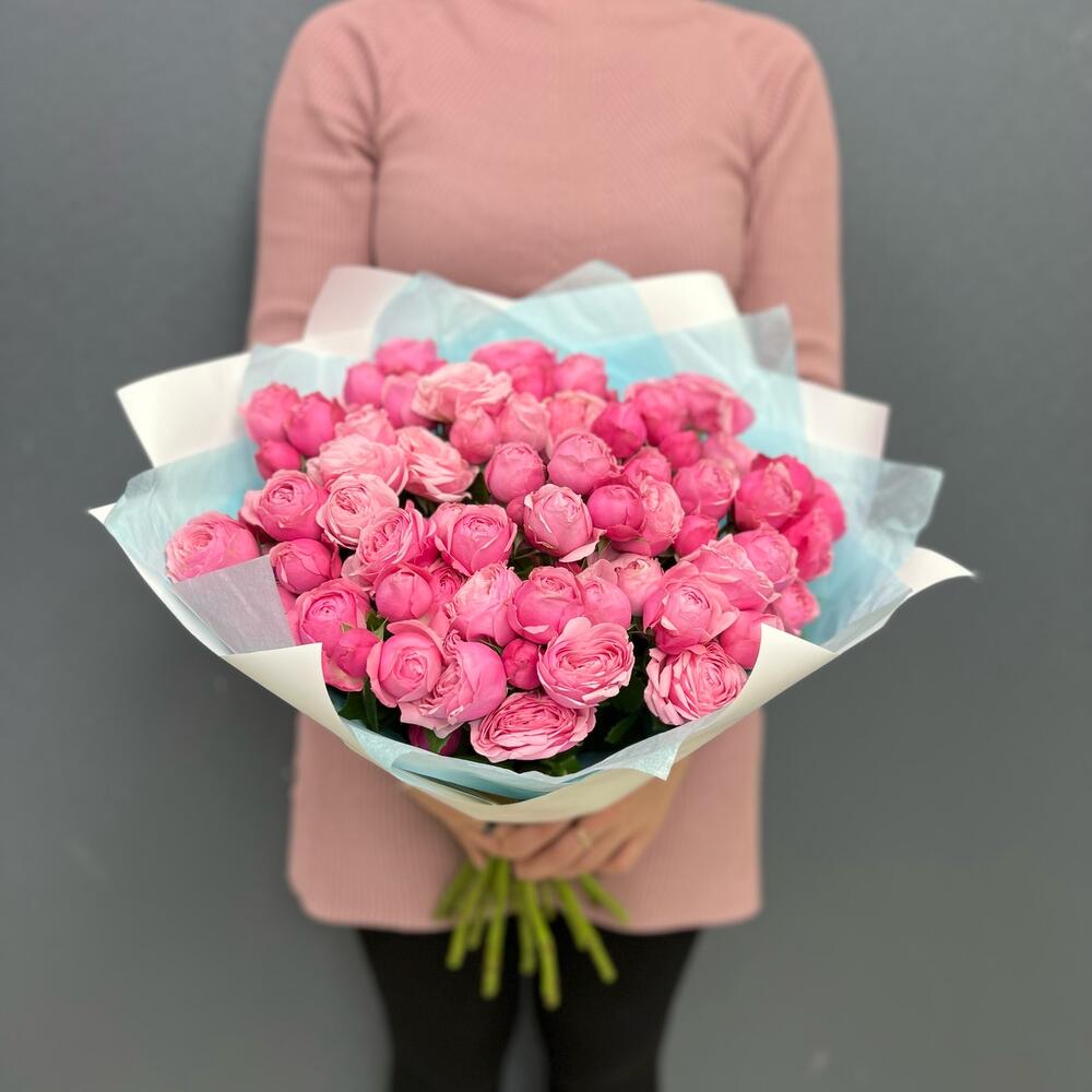 Лента – 2 шт.Тишью – 2 шт.Пленка матовая – 2 шт.роза сильва пинк пионовидная – 15 шт.