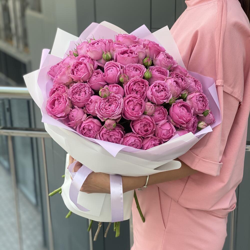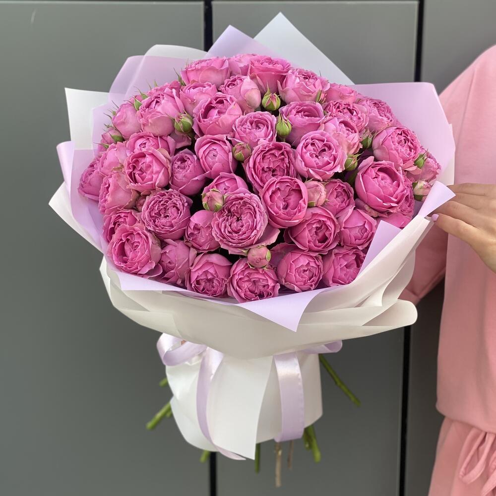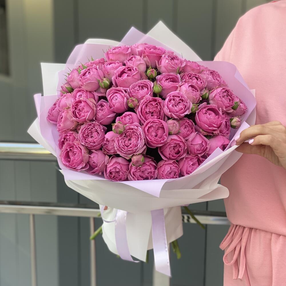 Писташ – 5 шт. Оформление – 1 шт. кустовая пионовидная роза misty bubbles – 15 шт.