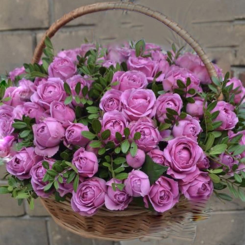 Роза кустовая пионовидная – 30 шт.Оазис флористический – 3 шт.Корзина большая – 1 шт.