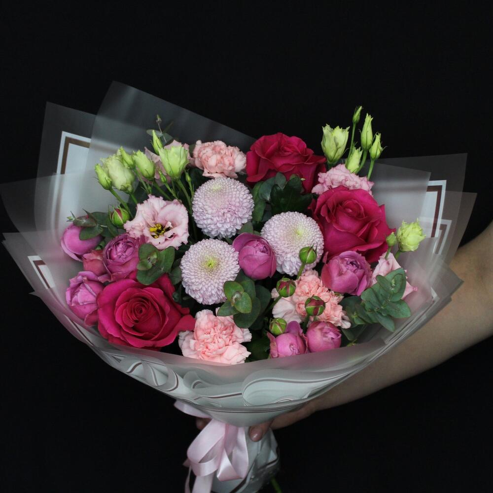 Категорий: Гвоздики, Кустовые розы, Лизиантусы, Пионовидные розы, Розы, Хризантемы