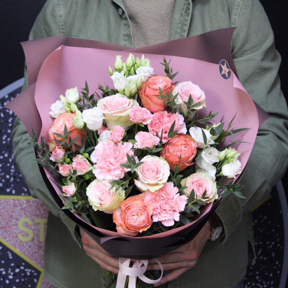 Категорий: Гвоздики, Кустовые розы, Лизиантусы, Пионовидные розы, Розы