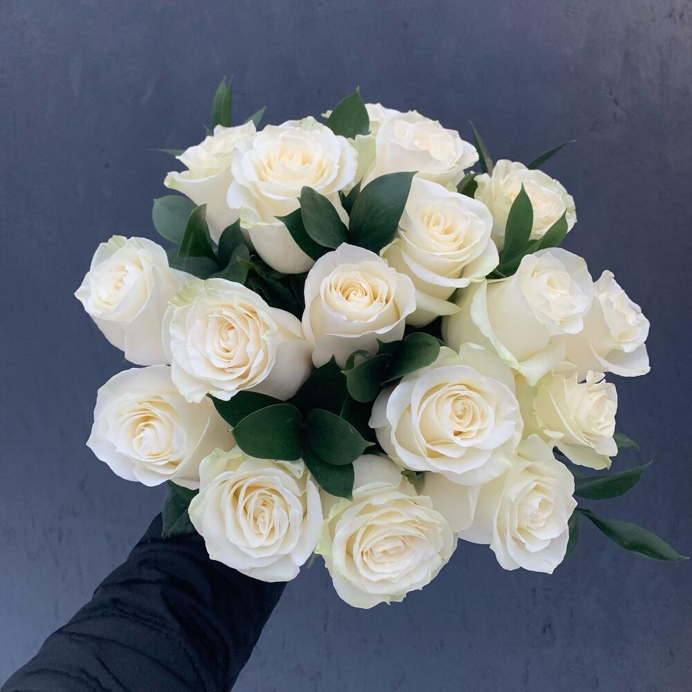Роза – 17 шт.Рускус – 5 шт.Лента атласная – 5 шт.