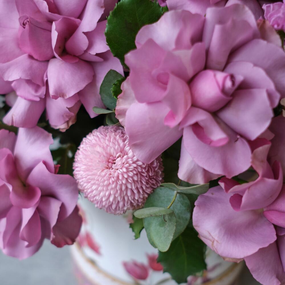 Гвоздики, Кустовые розы, Лизиантусы, Пионовидные розы, Розы