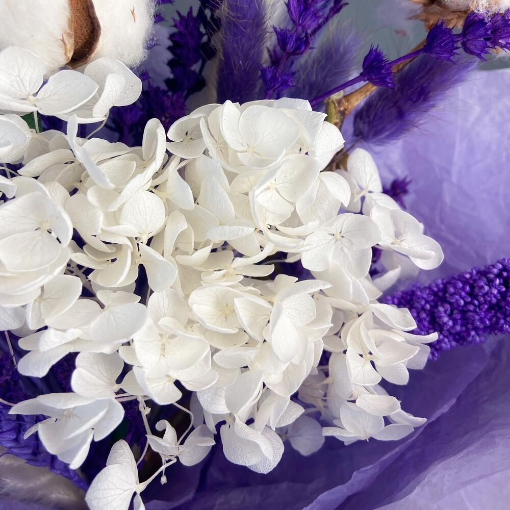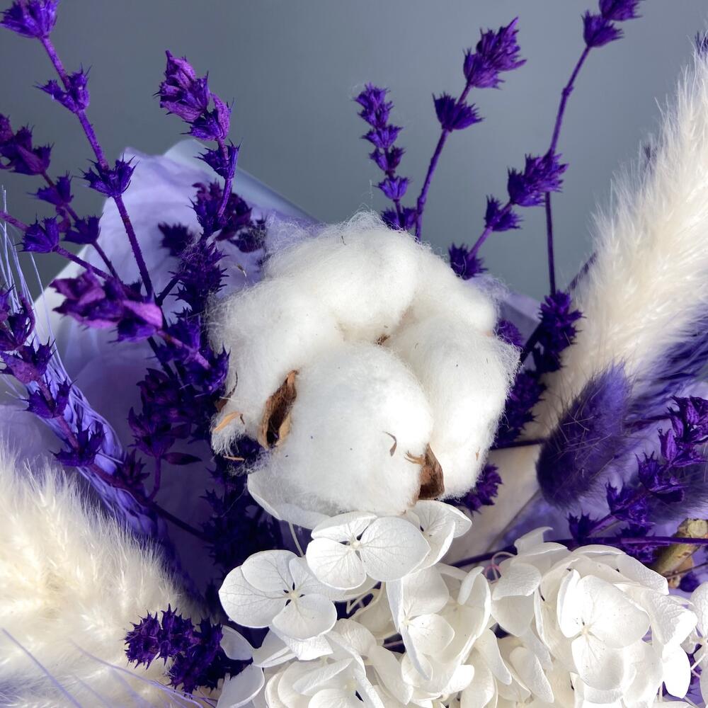 Букет из сухоцветов в лавандовых оттенках с хлопком