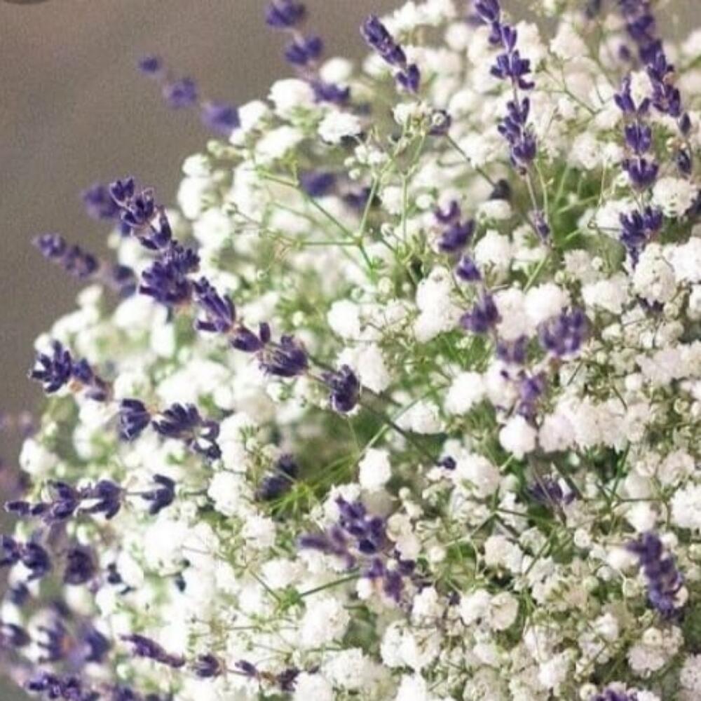 Гипсофила – 11 шт.Лаванда пучок – 1 шт.Лента атласная – 2 шт.