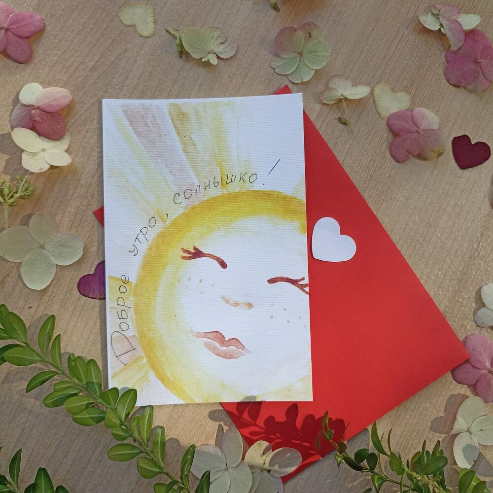 Открытка с любовью нарисована художником акварелью и отпечатана на плотной бумаге. Таких открыток нет нигде, кроме нашего магазина К каждой открытке Вы можете прислать текст в чат, который мы напечатаем в нескольких вариантах. Вы сможете выбрать тот шрифт, который Вам больше по душе, а мы аккуратно приклеим его к открытке.Открытку доставляем в ярком красном конверте, заклеенном сердечком, а внутрь кладём сухоцветы – сердечки из лепестков, лепестки, цветы и пару наклеек-сердечек❤Ждём Ваш текст для открытки в чате