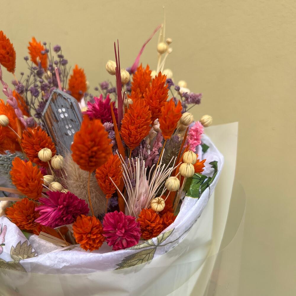фалерист – 10 шт.лен сухоцвет – 10 шт.сухоцветы микс – 30 шт.Упаковка дизайнерская – 2 шт.