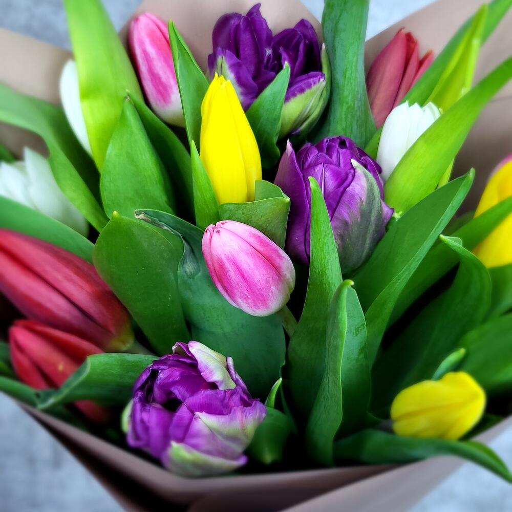 Яркий букет тюльпанов микс