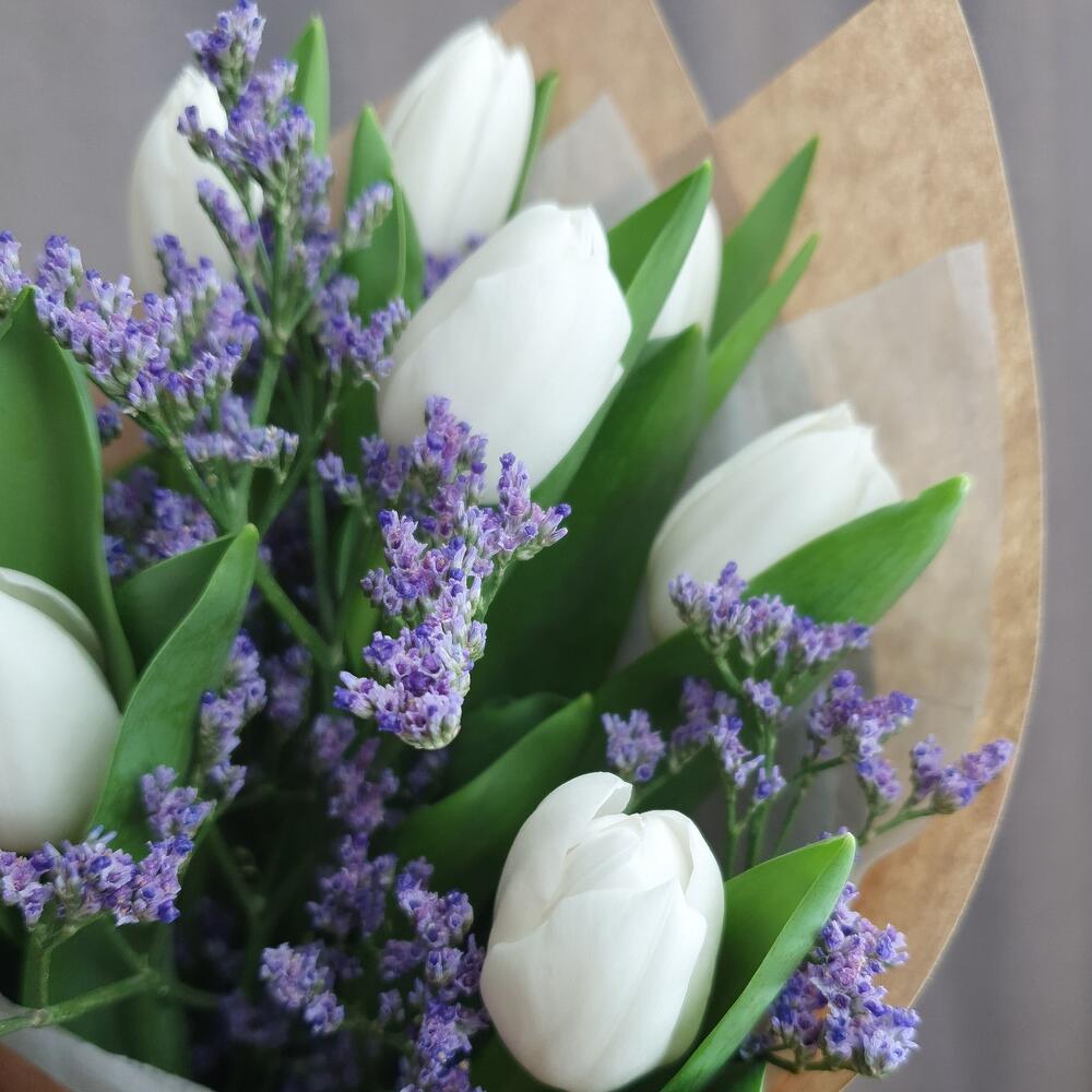 Тюльпан – 7 шт.Лимониум – 1 шт.Упаковка дизайнерская – 2 шт.